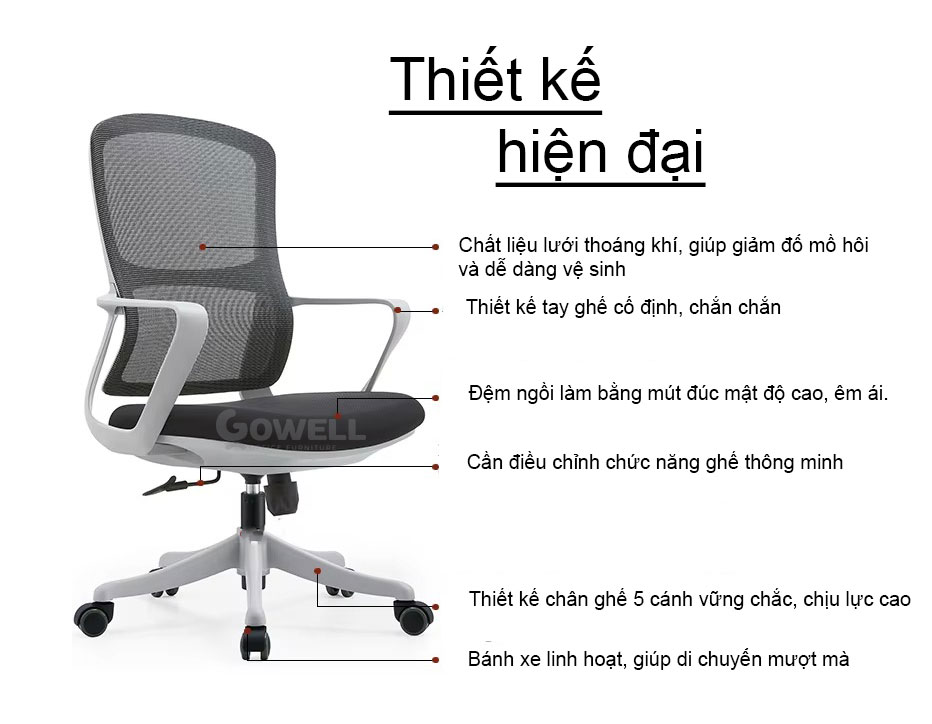 Chức năng điều chỉnh chiều cao linh hoạt: Ghế được trang bị cơ chế điều chỉnh chiều cao thông qua cần gạt dễ dàng, cho phép bạn thay đổi chiều cao ghế sao cho phù hợp với chiều cao của bàn làm việc và chiều cao của cơ thể. Việc này giúp duy trì tư thế ngồi chuẩn, bảo vệ cổ và cột sống, giảm nguy cơ mỏi mệt hay căng thẳng cơ thể khi làm việc.