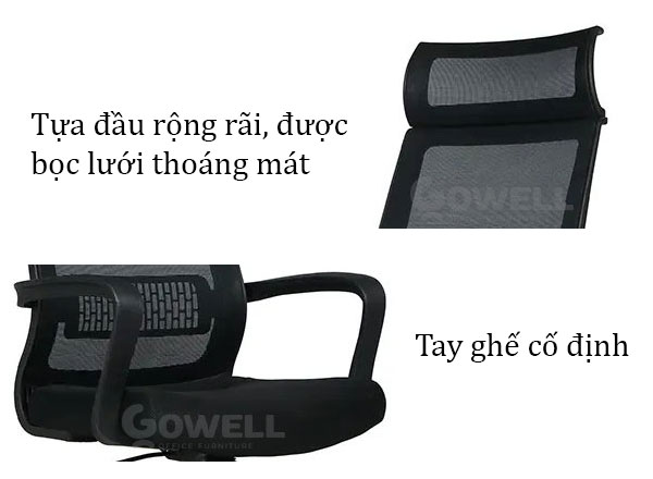 | Armrest (Tay ghế) | Tay ghế vuông cố định thiết kế cứng cáp, chắc chắn |