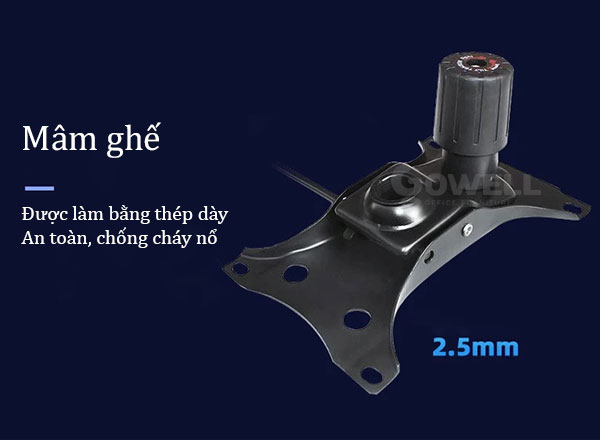 | Base (Chân ghế) | Chân sắt xi dày chống chịu tải trọng cao, giữ cân bằng tạo cảm giác ngồi an toàn |