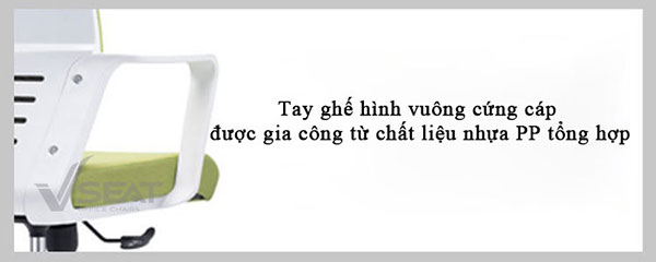 + Tay ghế vịn hình vuông cứng cáp được gia công từ chất liệu nhựa PP tổng hợp bền bỉ, chịu lực tác động mạnh tốt và độ cao chuẩn, phù hợp với bàn làm việc.