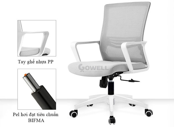 | Base (Chân ghế) | Chân nhựa chịu tải trọng tốt, giữ cân bằng tạo cảm giác ngồi an toàn |
