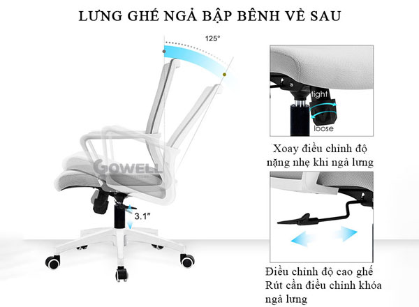 + Phần tựa lưng bọc vải lưới rỗng cao cấp tạo lực căng với độ đàn hồi cao, thoáng khí, tuổi thọ sử dụng lâu. Đệm ngồi bằng ván ép định khuôn rất chắc + mouse xốp dày và mặt ngoài bọc vải lưới rỗng ngồi rất êm ái, không độc hại cho sức khỏe.