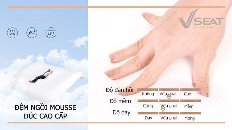 | Seat (Đệm ngồi) | Đệm mouse đúc cao su đàn hồi, chống xẹp lún |