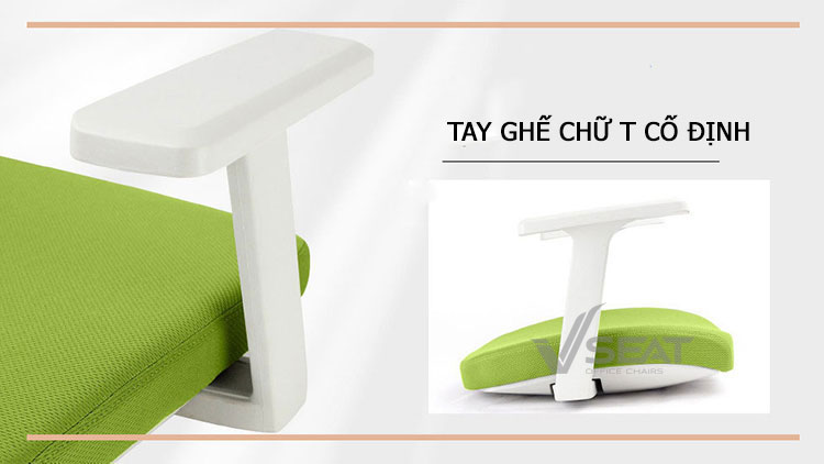 – Tay ghế chữ T với thiết kế cố định được chế tác từ nhựa PP cứng cáp, độ bền cao tạo sự tì đỡ vững chắc khi ngồi làm việc và nghỉ ngơi.