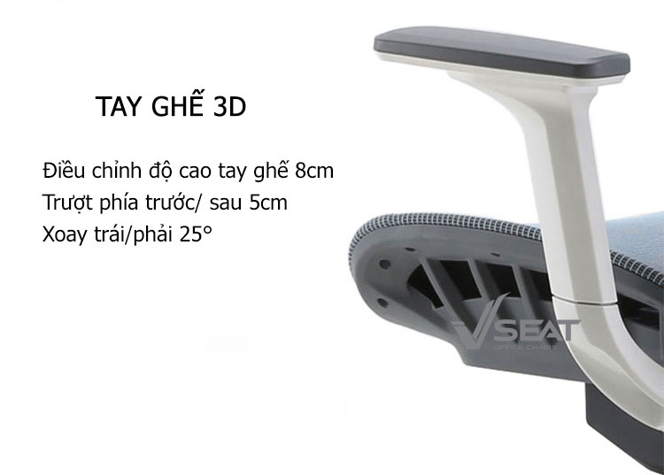 | Armrest (Tay ghế) | Tay ghế 3D nâng hạ, trượt trước-sau, xoay trái-phải, mặt bọc nhựa PU êm ái thoải mái gác tay thư giãn. |