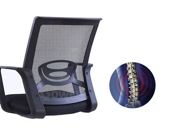 + Phần lưng khung nhựa PP bọc lưới thoáng mát kết cấu kiểu dáng uốn lượn ngã nhẹ về sau dạng chữ S nâng đỡ cột sống lưng và bảo vệ giúp các khớp xương vùng thắt lưng tránh bị tổn thương khi ngồi làm việc quá lâu.