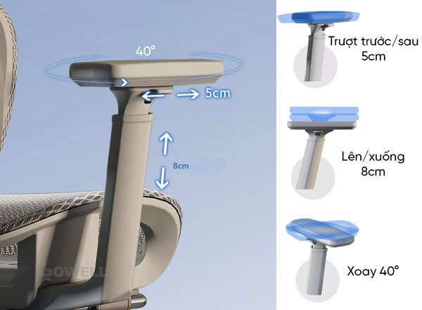 | Armrest (Tay ghế) | Tựa tay bằng nhựa PP, chống căng mỏi cơ vai – tay. |