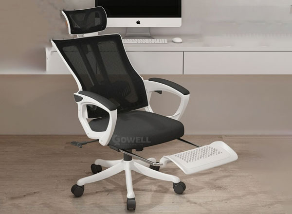 + Ghế thiết kế có gác chân rất tiện dụng với cơ chế kéo về phía trước nằm gác chân thư giản và đồng thời gập lại đẩy gọn vào bên dưới mặt đệm khi ngồi làm việc.