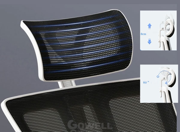 + Tựa đầu có thể điều chỉnh độ cao, độ nghiêng dễ dàng giúp nâng đỡ các khớp xương vùng cổ an toàn, hạn chế mỏi cổ và cho cảm giác ngồi dễ chịu nhất.