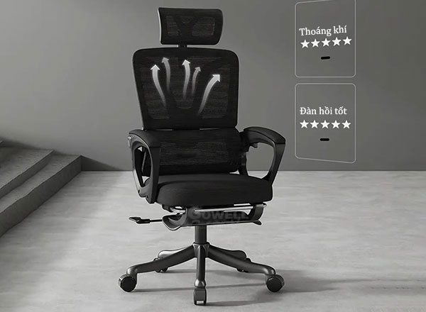 + Lưng ghế cao thiết kế đúng theo tiêu chuẩn Ergonomics với đường cong hình chữ S nâng đỡ cột sống lưng an toàn và tạo tư thế ngồi đúng, hạn chế đau nhức các khớp xương khi ngồi làm việc lâu. Lưng ghế bọc vải lưới rỗng tạo lực căng thoáng mát, bền đẹp.