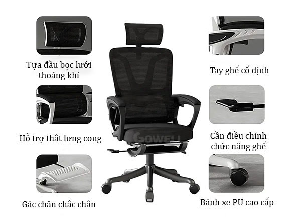 Hiện nay xu hướng chọn Ghế Xoay Văn Phòng Công Thái Học Có Ngả Lưng, Gác Chân, Tựa Cổ – Ghế Giám Đốc, Gaming – Khung Đen, Lưới Đen, Nệm Đen Otis 02 nhập khẩu nguyên chiếc mang thương hiệu Gowell đang ngày càng phổ biến không chỉ với nét tinh tế – sang trọng, chất lượng đảm bảo và thân thiện với môi trường mà còn do tính năng ưu việt nổi trội so với các dòng phổ thông hiện tại.