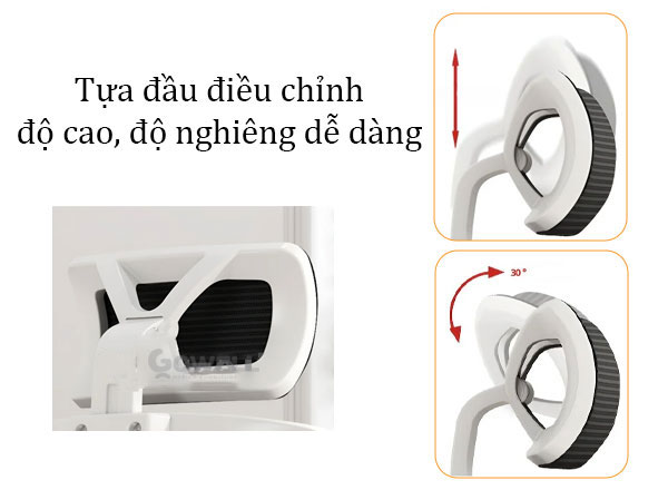 + Tựa đầu có thể điều chỉnh độ cao, độ nghiêng dễ dàng giúp nâng đỡ các khớp xương vùng cổ an toàn, hạn chế mỏi cổ và cho cảm giác ngồi dễ chịu nhất.