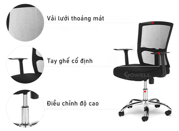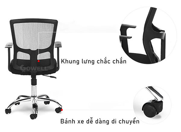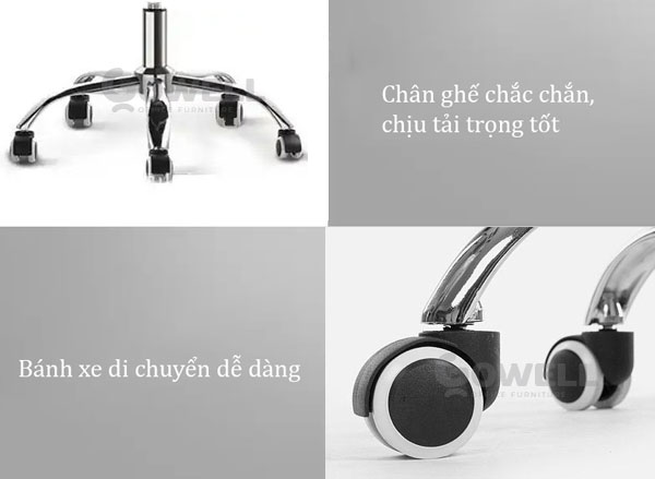 | Base (Chân ghế) | Chân sắt xi chịu tải trọng tốt, giữ cân bằng tạo cảm giác ngồi an toàn |